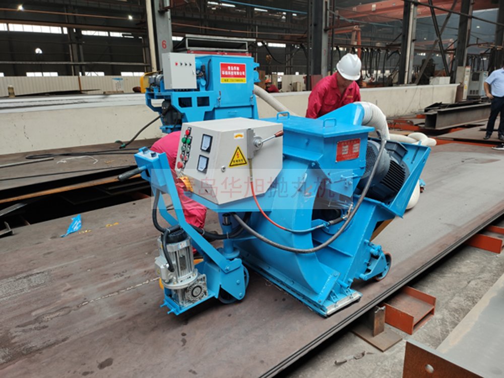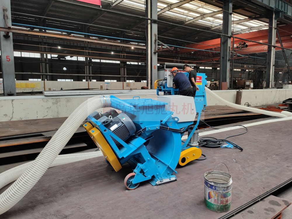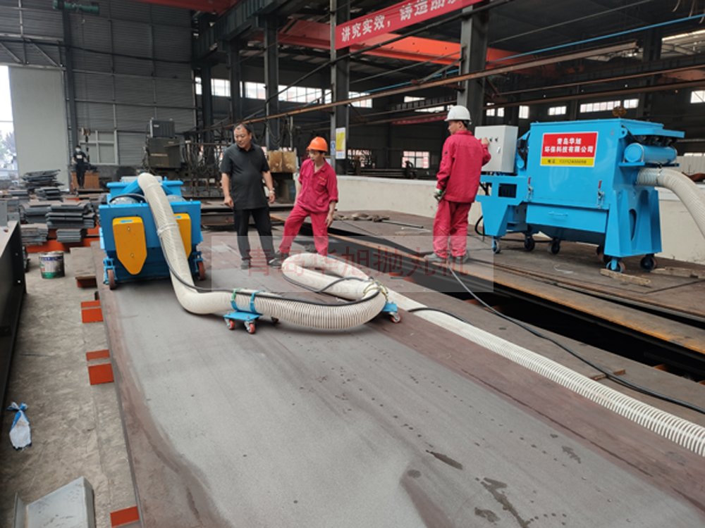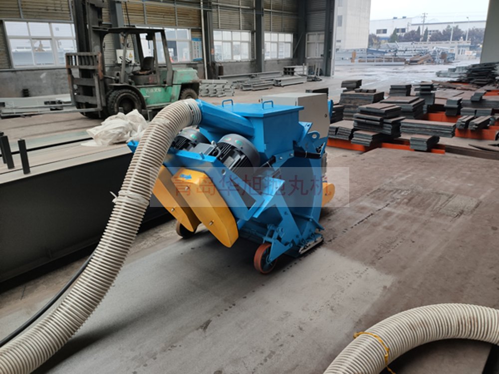客戶訂購(gòu)的移動(dòng)式鋼板拋丸機(jī) 調(diào)試現(xiàn)場(chǎng)除銹效果